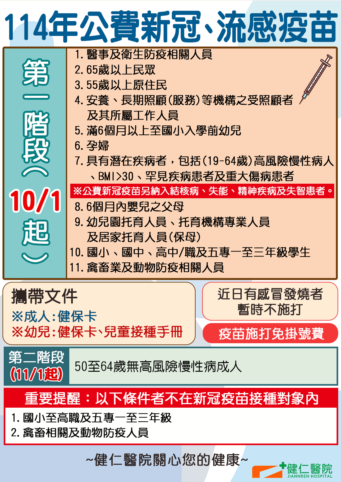 - 最新消息 【114年公費新冠疫苗、流感疫苗10/1開始施打】