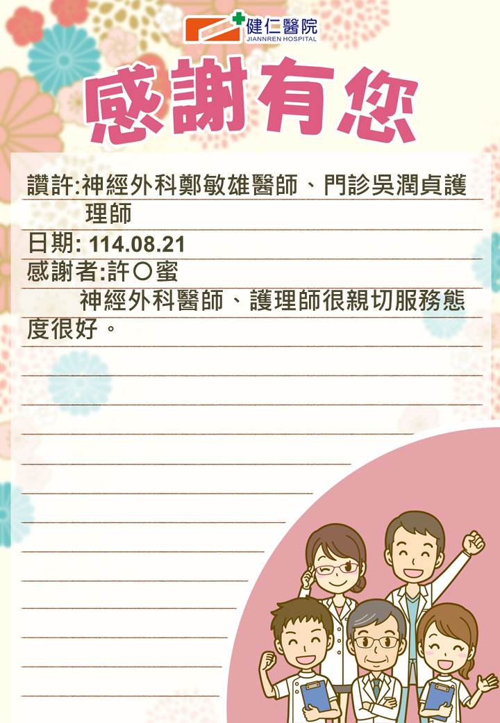 - 感謝園地 讚許事件-鄭敏雄醫師