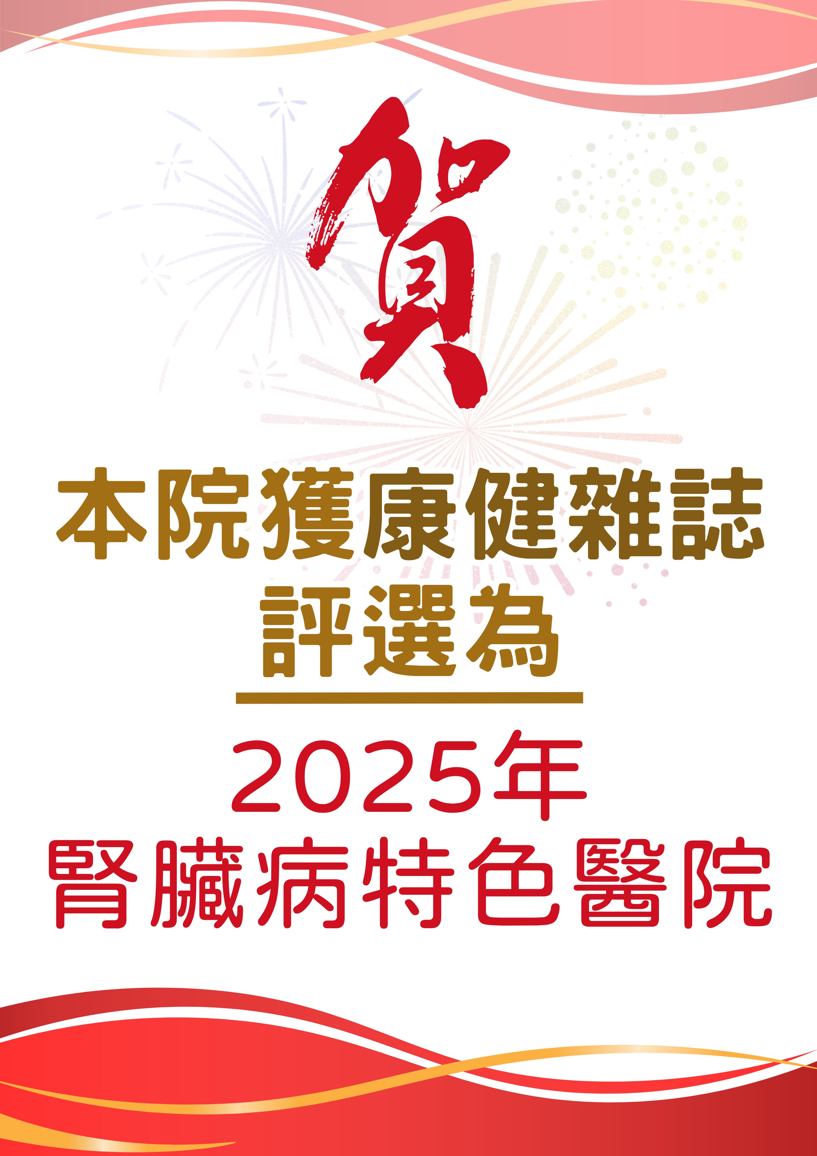 - 最新消息 賀!本院獲康健雜誌評選為腎臟病特色醫院