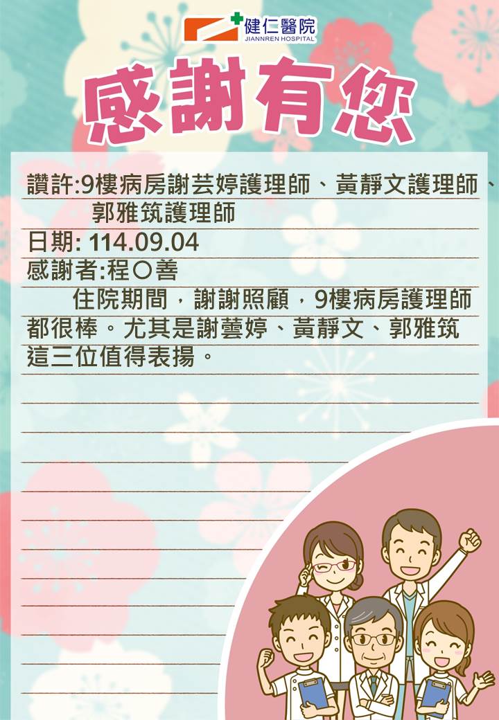 讚許事件-9樓謝蕓婷、黃靜文、郭雅筑護理師