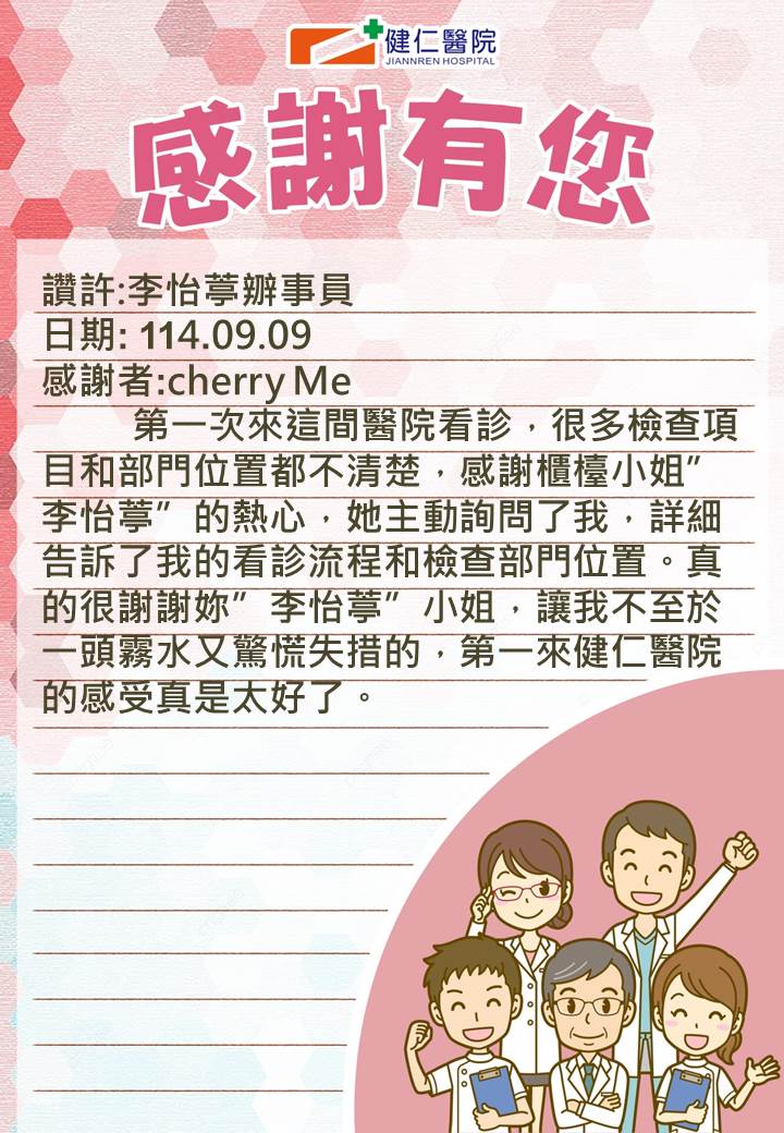 - 感謝園地 讚許事件-批價組李怡葶辦事員、體檢室護理師