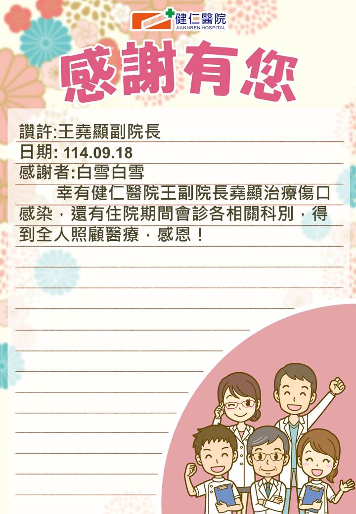 - 感謝園地 讚許事件-王堯顯、程曉晶等醫師