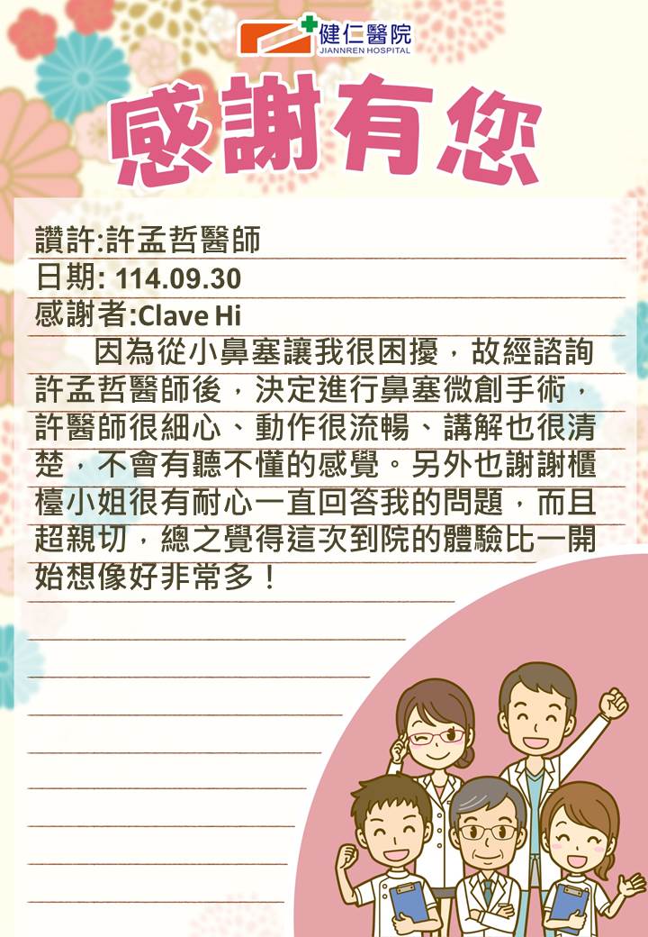 讚許事件-耳鼻喉科許孟哲醫師