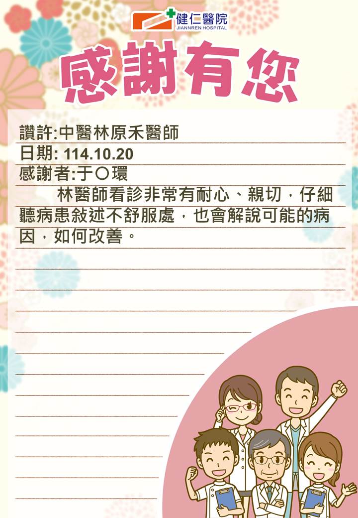 - 感謝園地 讚許事件-中醫林原禾醫師