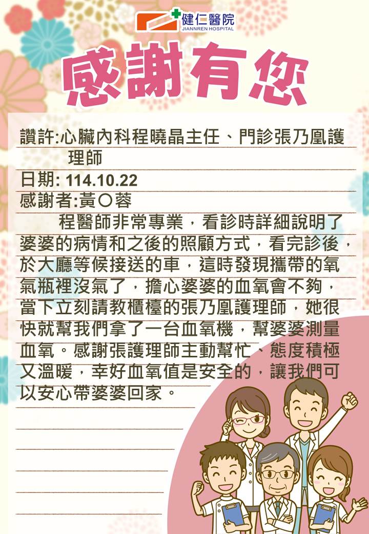 - 感謝園地 讚許事件-健仁醫院
