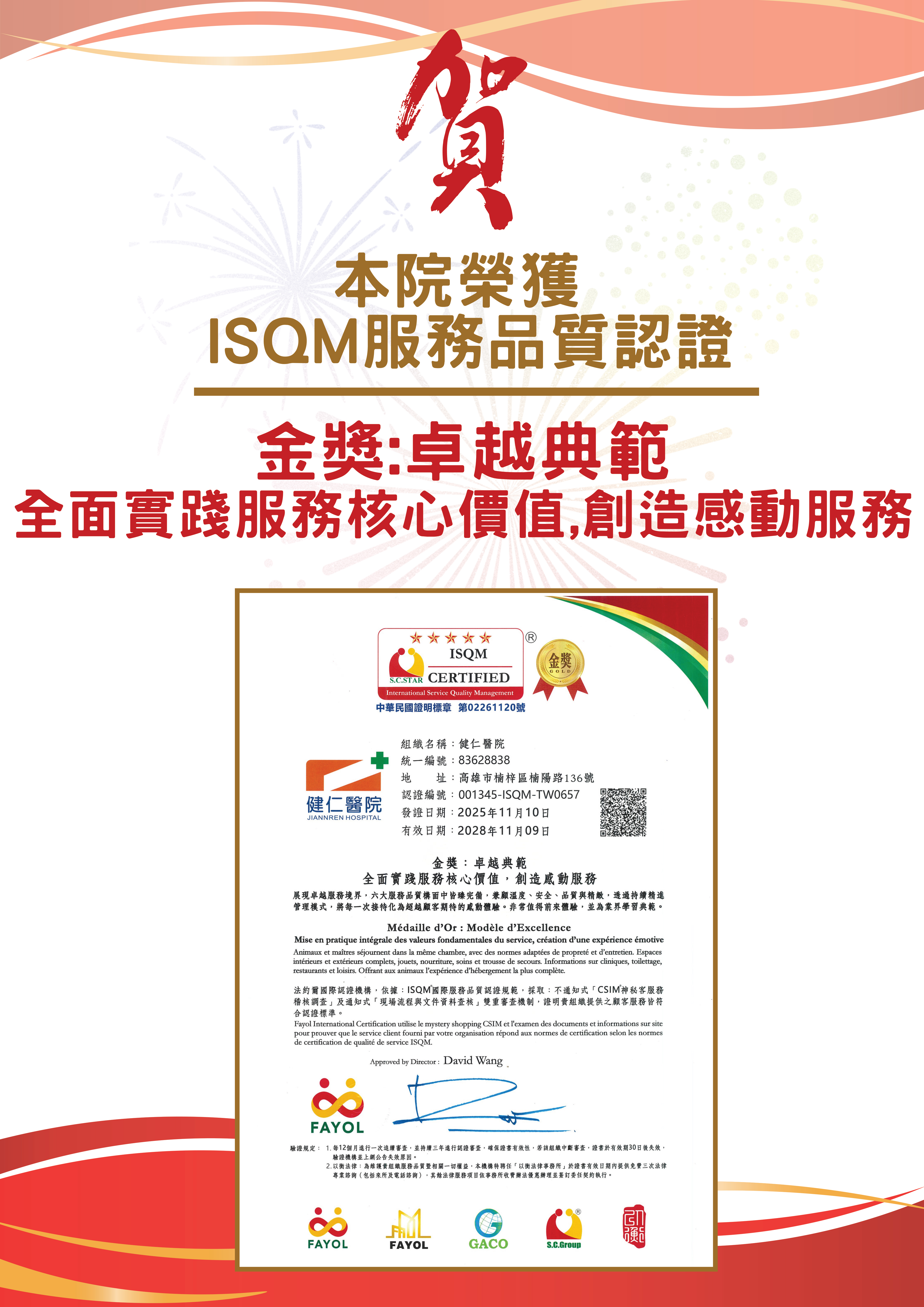 - 最新消息 賀!本院榮獲ISQM國際服務品質認證金獎:卓越典範