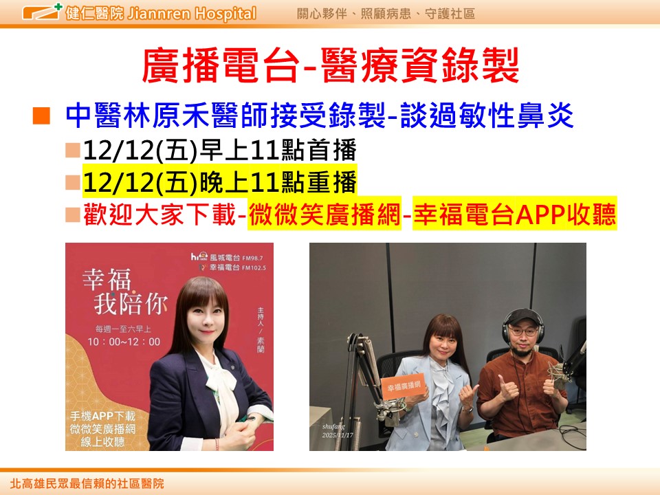 - 最新消息 本院中醫科李永勝主任及林原禾醫師接受微微笑廣播網邀請錄製