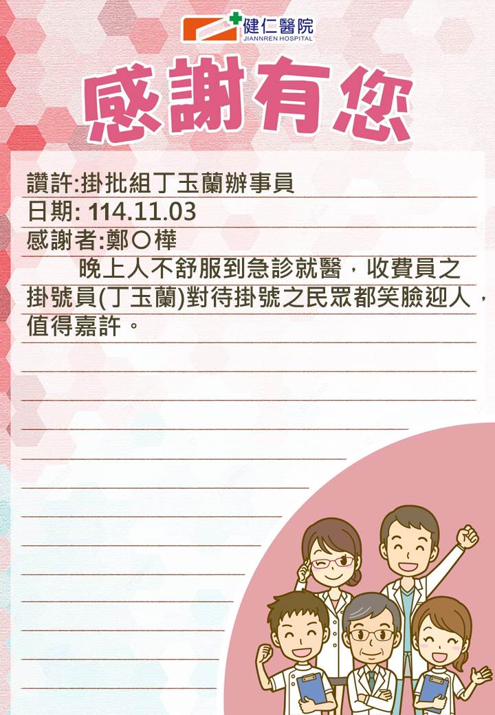 - 感謝園地 讚許事件-健仁醫院