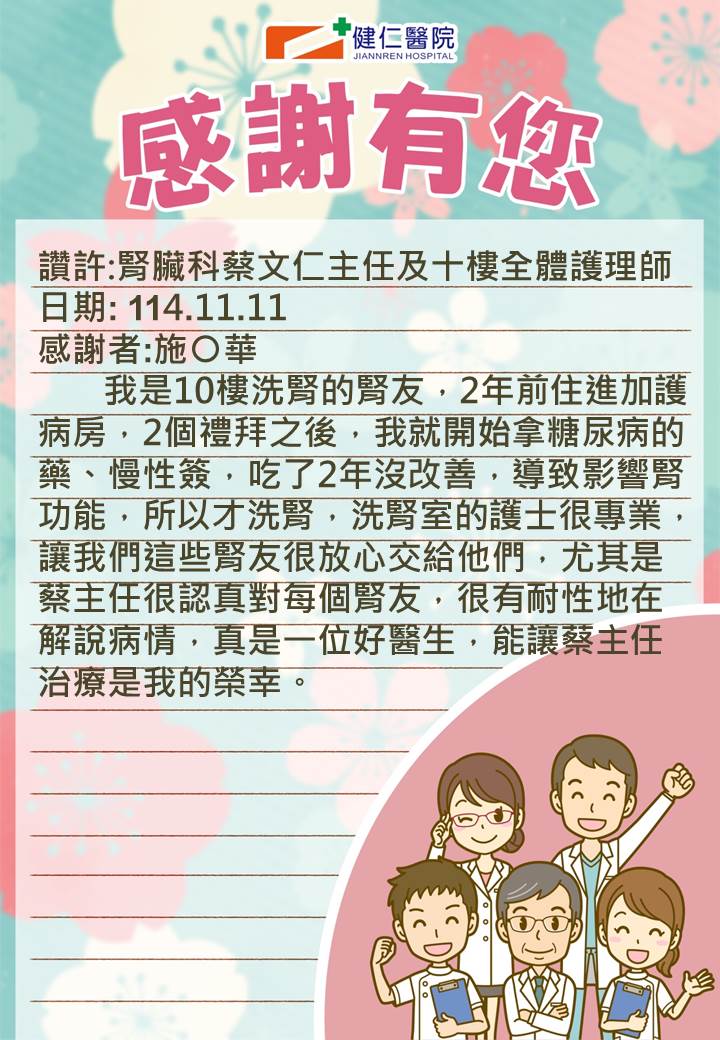 讚許事件-腎臟科蔡文仁主任、洗腎室護理師