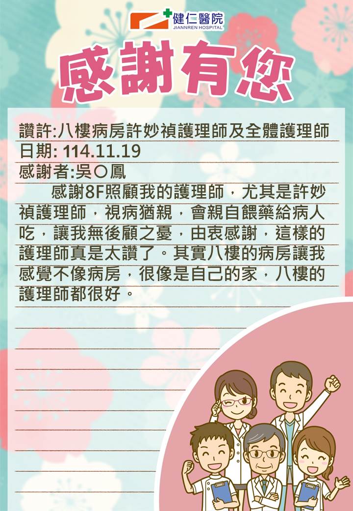 讚許事件-8樓病房許妙禎護理師及全體護理師