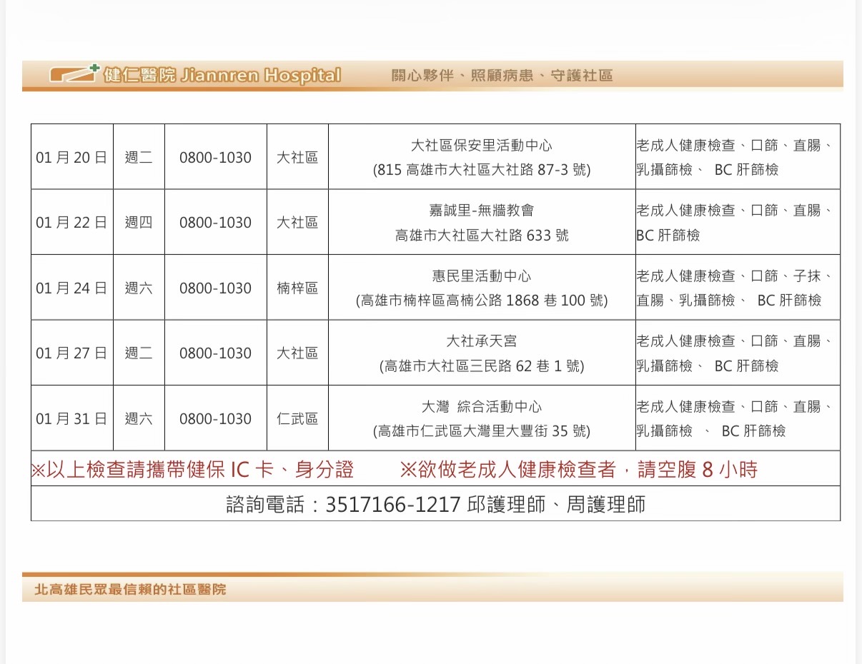 - 最新消息 115年1月2日起,高雄市免費老人健康檢查開始囉
