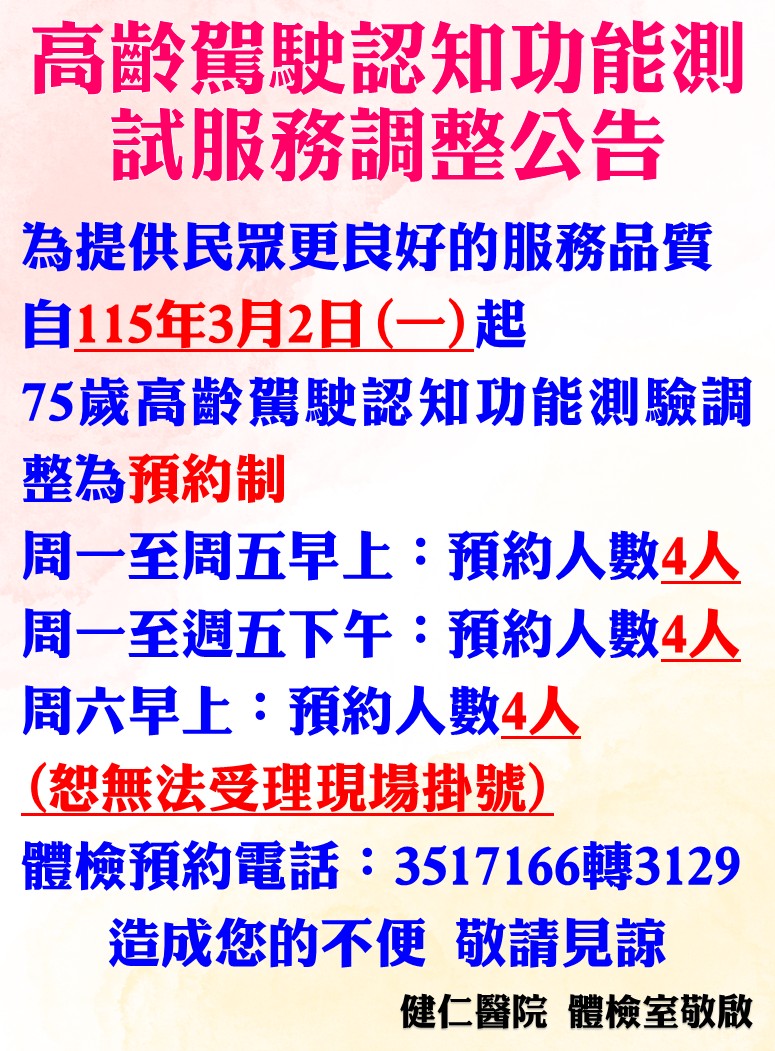 - 最新消息 高齡駕駛認知功能測驗服務調整公告