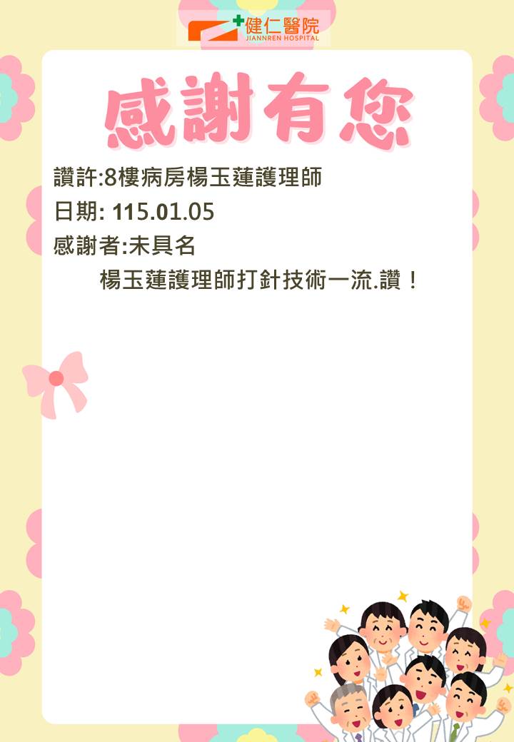 - 感謝園地 讚許事件-8樓病房楊玉蓮護理師