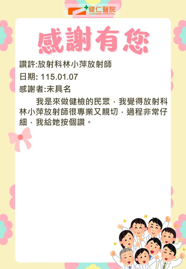 - 感謝園地 讚許事件-健仁醫院