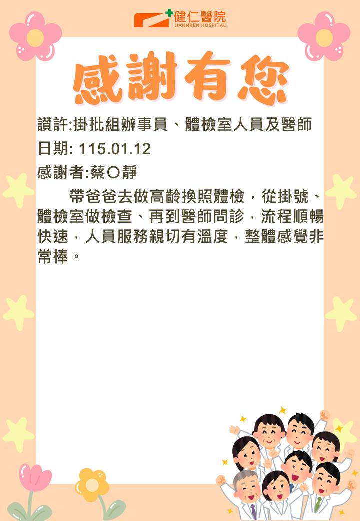 - 感謝園地 讚許事件-蔡慈蔭醫師