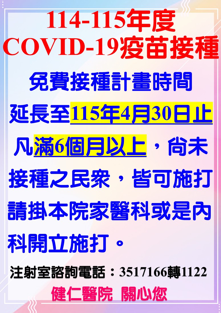 - 最新消息 114-115年度COVID-19疫苗接踵