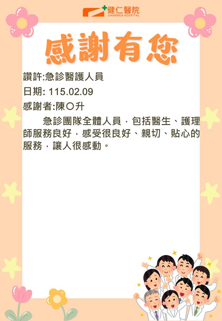 - 感謝園地 讚許事件-健仁醫院
