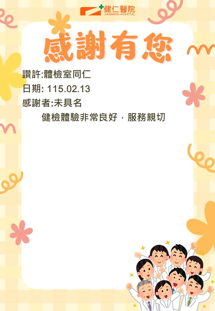 - 感謝園地 讚許事件-體檢室同仁