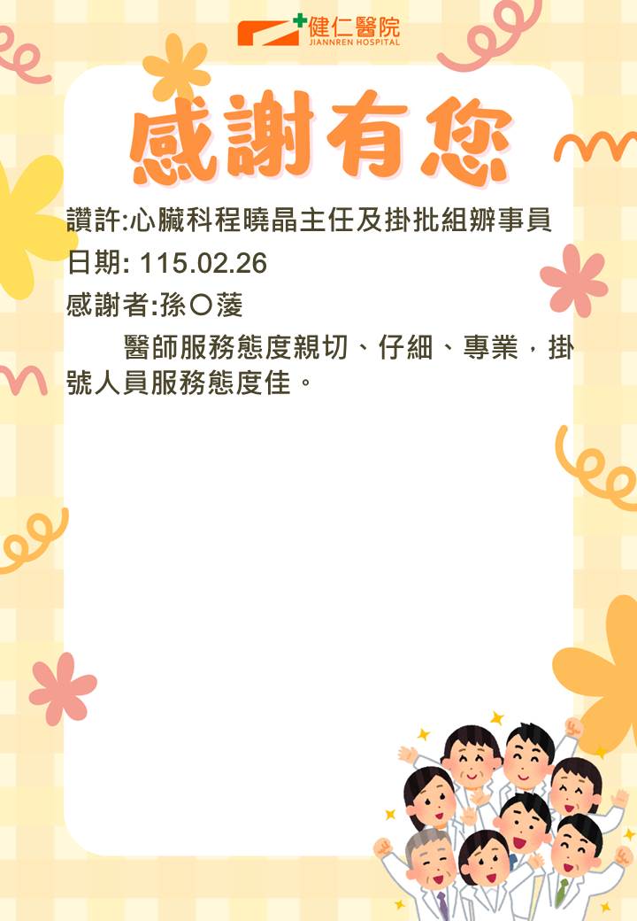 - 感謝園地 讚許事件-健仁醫院